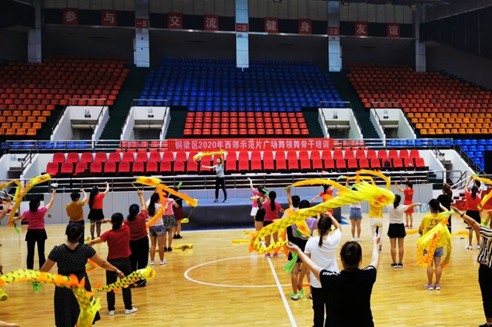 6月17日,銅梁區2020年廣場舞領舞骨干培訓在金龍體育館正式開班,拉開了“西郊示范片”系列文化旅游活動的序幕。此次培訓由區文化旅游委主辦,區文化館承辦,培訓為期兩天,由文化館老師進行授課,150余名文化專干、鎮街村社廣場舞領舞骨干參加了培訓。