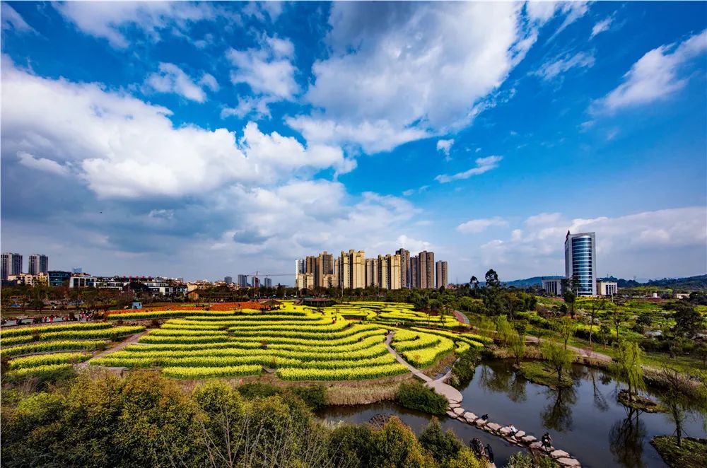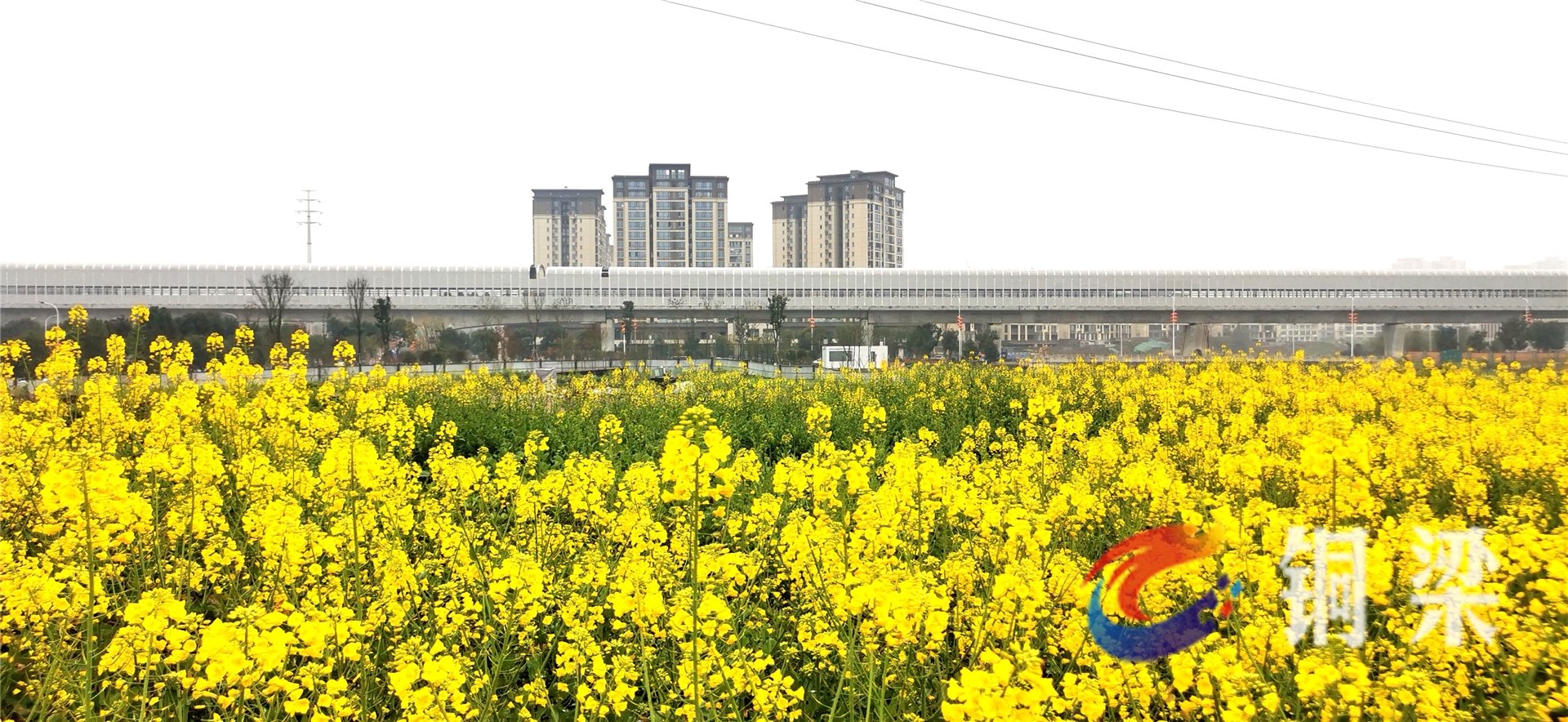 初春時節,在龍鄉銅梁,無論是城郊還是農村,一片片油菜花迎春開放,為大地增添了色彩,為鄉村帶去了盎然春意。在南城街道雙門社區,透過一
