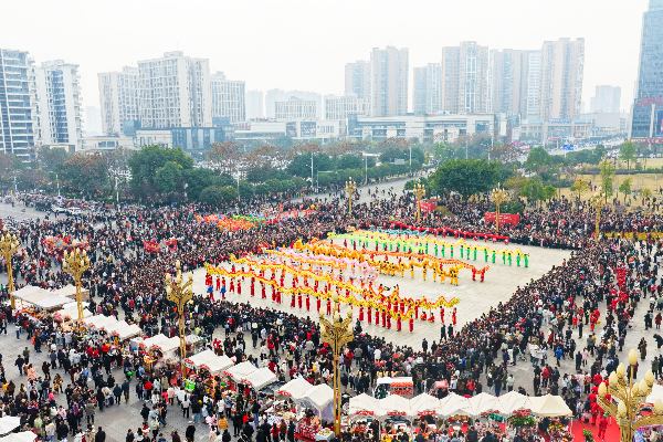 2月19日,正月初三,重慶市銅梁區年味正濃。2026年銅梁龍舞大巡游暨“天下龍人·共舞銅梁”全民狂歡活動迎來第二場主題巡游——“歸寧呈祥
