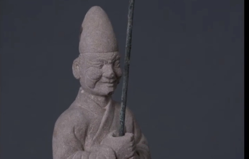 持傘俑:長5 1cm、寬7 9cm、高23cm、重970g,1982年巴川中學出土赭砂石質,頭戴圓形尖頂帽,身穿寬袖長衫,下穿圍裙,腳穿靴,手持長傘。傘